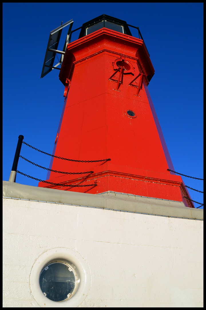 In 1877, a two-story, cast-iron light station, then referred to as the Menominee Pierhead Lighthouse, was constructed on the northern end of the mouth of the Menominee River. The tower itself was painted white, and it housed a ruby-glass lantern, providing a gleaming, red beacon of nautical safety for 12 miles.